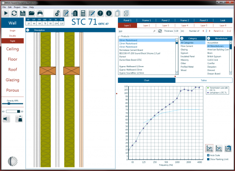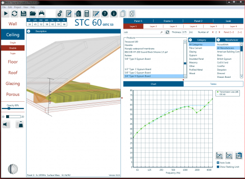 - Predicts the sound insulation performance of single, double, triple and quad panel Walls, Floors, Ceilings and Windows